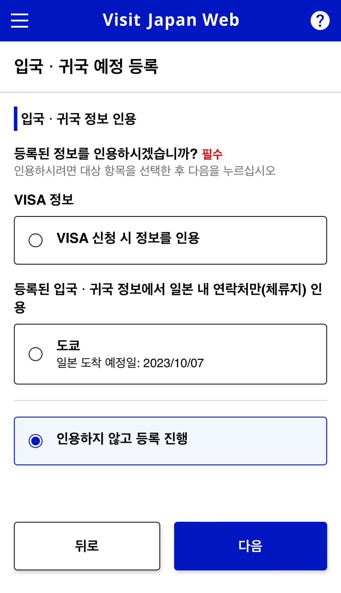 - VISA가 필요 없는 일반 관광 목적의 일본 방문의 VISA 없음과, 새로운 여행지의 경우 인용하지 않고 등록 진행합니다.
